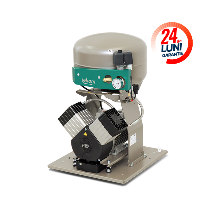 Compresorul fara ulei Ekom DK50 are o capacitate a rezervorului de aer de 25 l, fiind adecvat pentru doua unituri dentare sau echipamente din laboratoarele dentare.