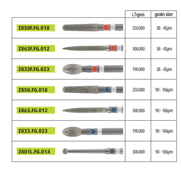 Kit freze diamantate concepute special pentru prelucrarea zirconiului.